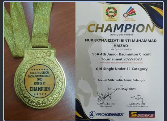 2023 SSA 4th Junior Badminton Circuit Post published:September 3, 2023 Post category:Event / News / Notice 侨南之光 恭喜Nur Eryna Izzati同学(4K)在SSA 4th Junior Badminton Circuit 2023年女子单打(11岁以下)比赛中荣获冠军为校争光 可喜可贺,恭喜恭喜 Read more articles Previous Post2023年教师节庆典Next PostSUPREME BADMINTON TOURNAMENT 2023