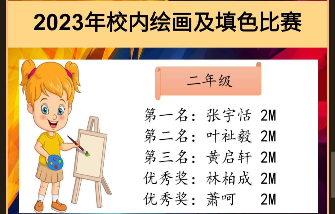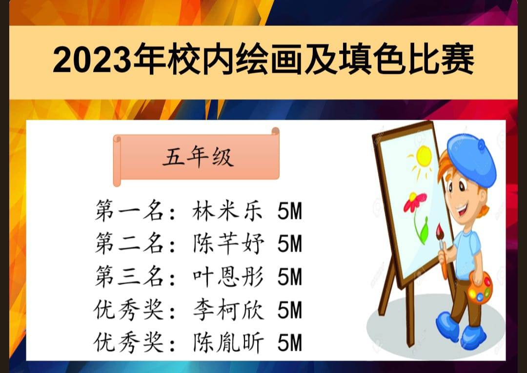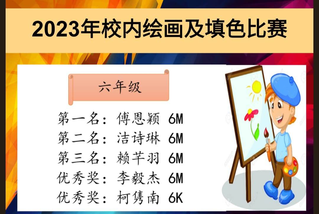 2023年校内绘画及填色比赛 Post published:November 28, 2023 Post category:Event / News / Notice 2023年校内绘画及填色比赛成绩 —————— 一张张绘画 都是孩子们美的表达,美的创造。 #恭喜得奖同学 #再接再厉 Read more articles Previous Post侨南华小校内羽球比赛【新闻报导】Next PostNursery Rhyme Recitation and Storytelling Competiton 2023