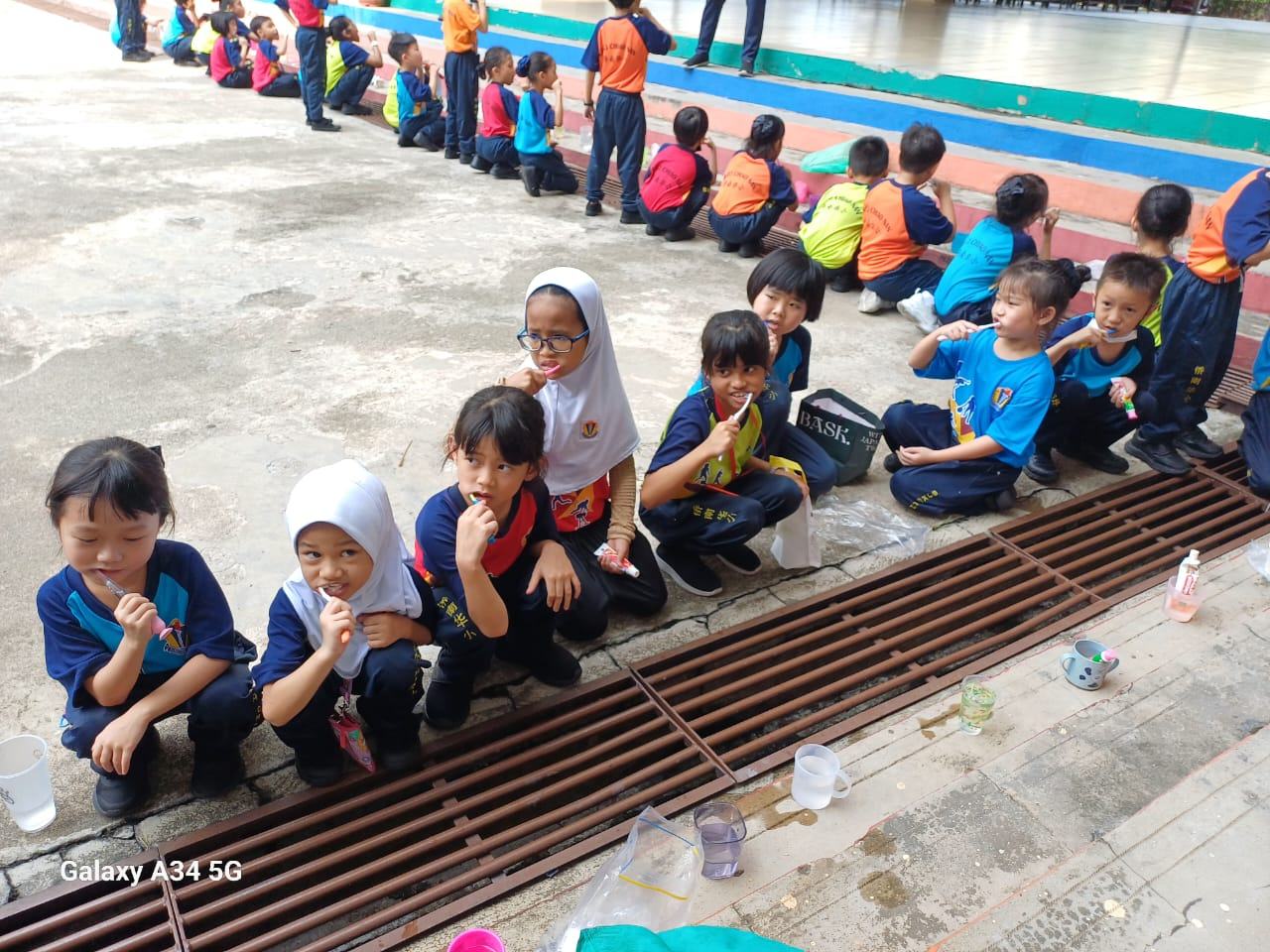 今天,牙科护士到校示范正确的刷牙方式,以灌输学生们牙齿保健的重要性。