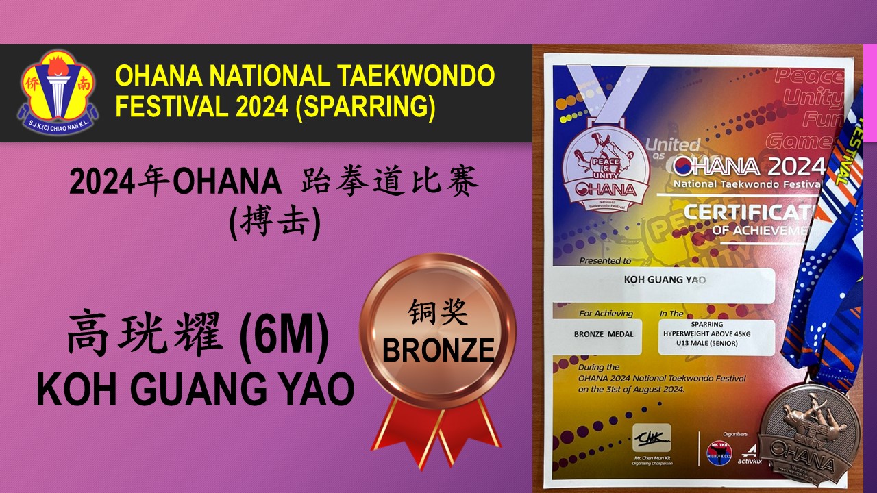 OHANA NATIONAL TAEKWON-DO FESTIVAL 2024 Post published:September 29, 2024 Post category:Event / News / Notice OHANA NATIONAL TAEKWON-DO FESTIVAL 2024 (PATTERN & SPARRING) ═─═─═─═─═─═─═─═─═─═─═─═─═ 恭喜来自6M的高珖耀同学在 套拳中荣获 及 搏击荣获为校增光。可喜可贺 #Congratulations Read more articles Previous Post美化与整洁校园行动Next Post2024年中秋节亲子灯笼制作比赛