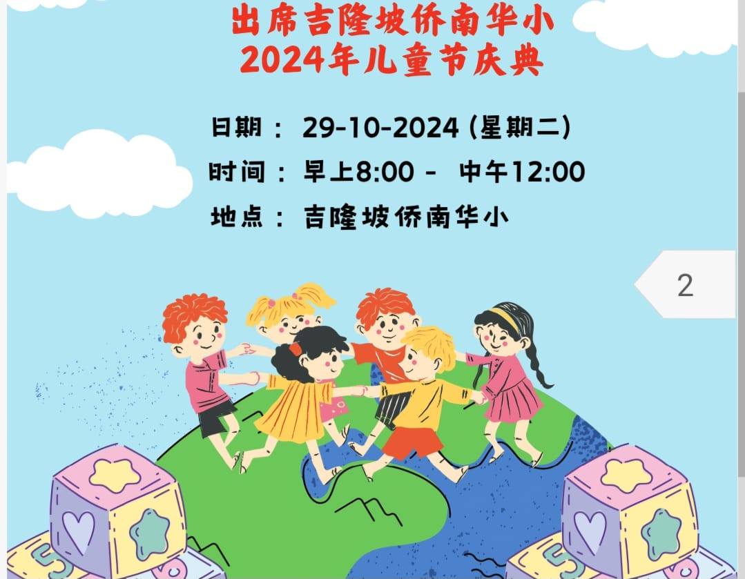 2024侨南华小 儿童节庆典 Post published:October 20, 2024 Post category:Event / News / Notice 侨南华小 2024儿童节庆典@29/10/2024 “童心同乐,童梦无限” 儿童节不一定是孩子们的专属时光 也可以是爸爸妈妈曾经的美好童年 爷爷奶奶记忆中的简单快乐 或是叔叔阿姨许多的回忆杀 满满的年代感,欢迎大小朋友一起来过节! 今年侨南孩子太幸福了,除了可以看小丑魔术表演还可以在班上开茶会。除此之外,家协也特别安排让孩子们玩“充气城堡”(Inflatable Bouncy Castle) 孩子们一定很期待这属于你们的日子。。。。。。 Read more articles Previous Post2024年每月班级出席率奖及班级守时出席奖Next Post性教育讲座《长大的感觉真好》