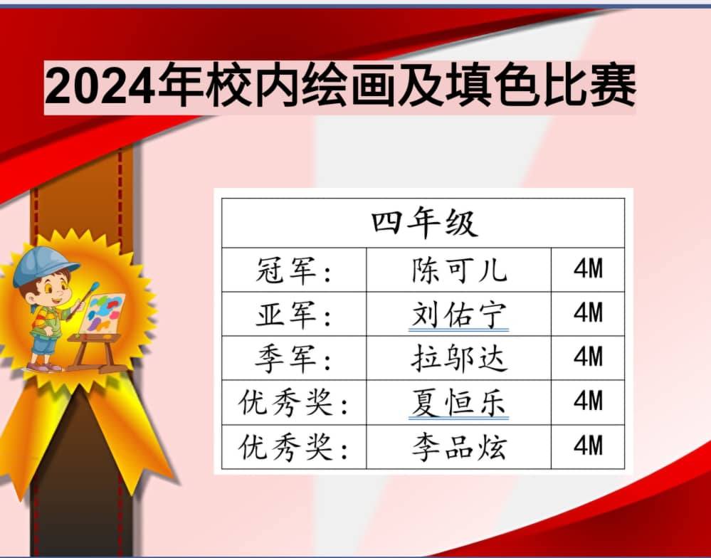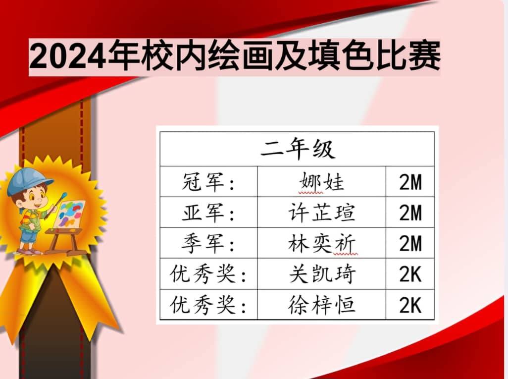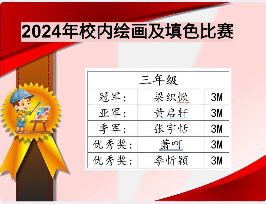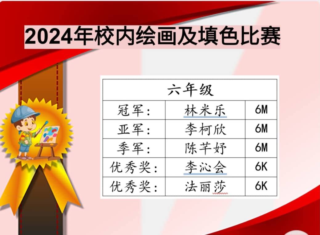 2024年校内绘画及填色比赛成绩 Post published:November 2, 2024 Post category:Event / News / Notice 2024年校内绘画及填色比赛成绩 —————— 一张张绘画 都是孩子们美的表达,美的创造。 #恭喜得奖同学 #再接再厉 Read more articles Previous PostPAJSK 2024/2025Next Post2024年儿童节【充气城堡】