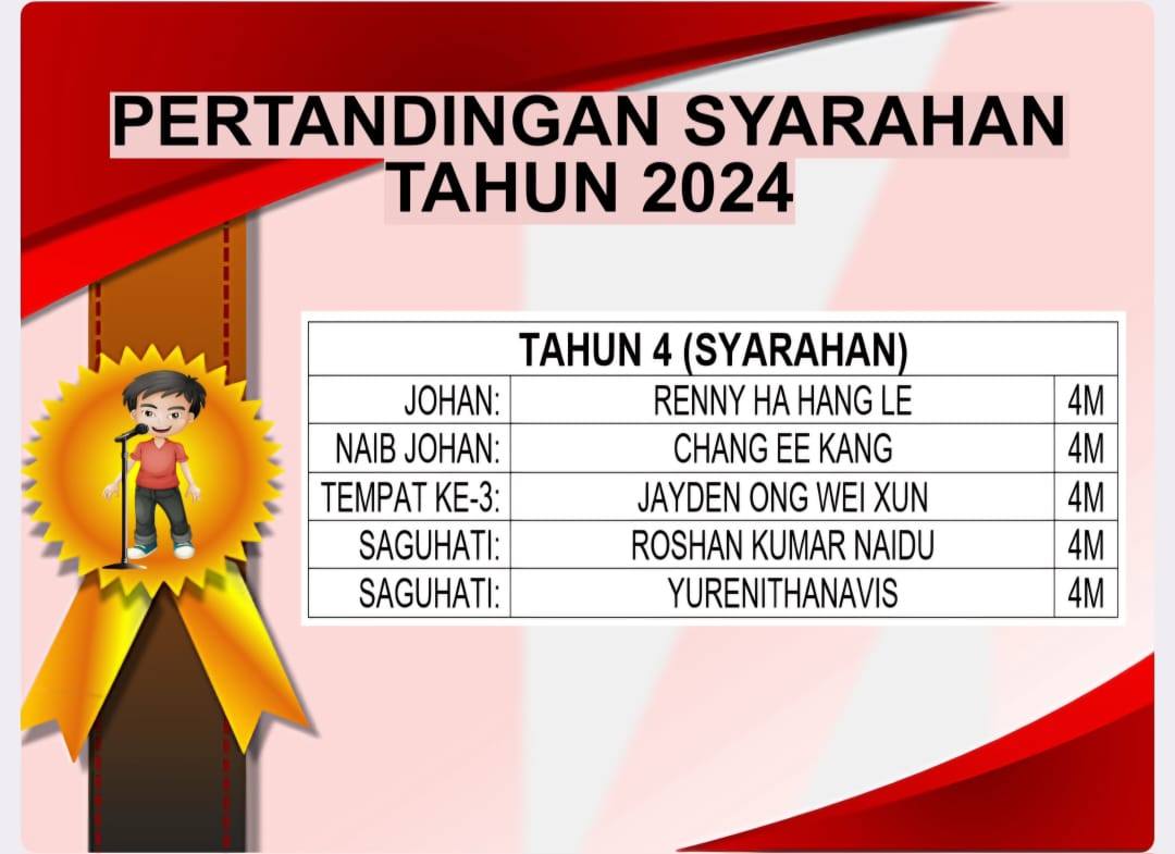 2024年侨南华小校内国语讲故事及演讲比赛成绩 Post published:November 10, 2024 Post category:Event / News / Notice 2024年侨南华小校内国语讲故事及演讲比赛成绩 Keputusan Pertandingan Bercerita Bahasa Melayu & Syarahan 2024 SJKC Chiao Nan 恭喜以上所有得奖的同学 Tahniah dan syabas kepada murid-murid yang memenangi anugerah #侨南多才多艺 #侨南校内比赛成绩 Read more articles Previous Post快乐儿童节Next Post2024年吉隆坡侨南华小校内乒乓比赛