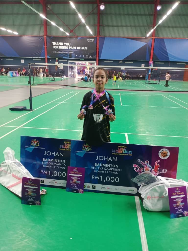 Karnival Liga Sukan Uniti Peringkat Kebangsaan 2024 Post published:November 10, 2024 Post category:Event / News / Notice Karnival Liga Sukan Uniti Peringkat Kebangsaan 2024 —————————- 恭喜本校依丽娜(5K)同学在以上比赛中的12岁以下女子双打及混双中横扫冠军宝座。为校增光可喜可贺 Read more articles Previous PostLong River Sports羽球赛Next PostNATIONAL INTERSTATE GIRLS’ UNDER 12 CHAMPIONSHIPS 2024