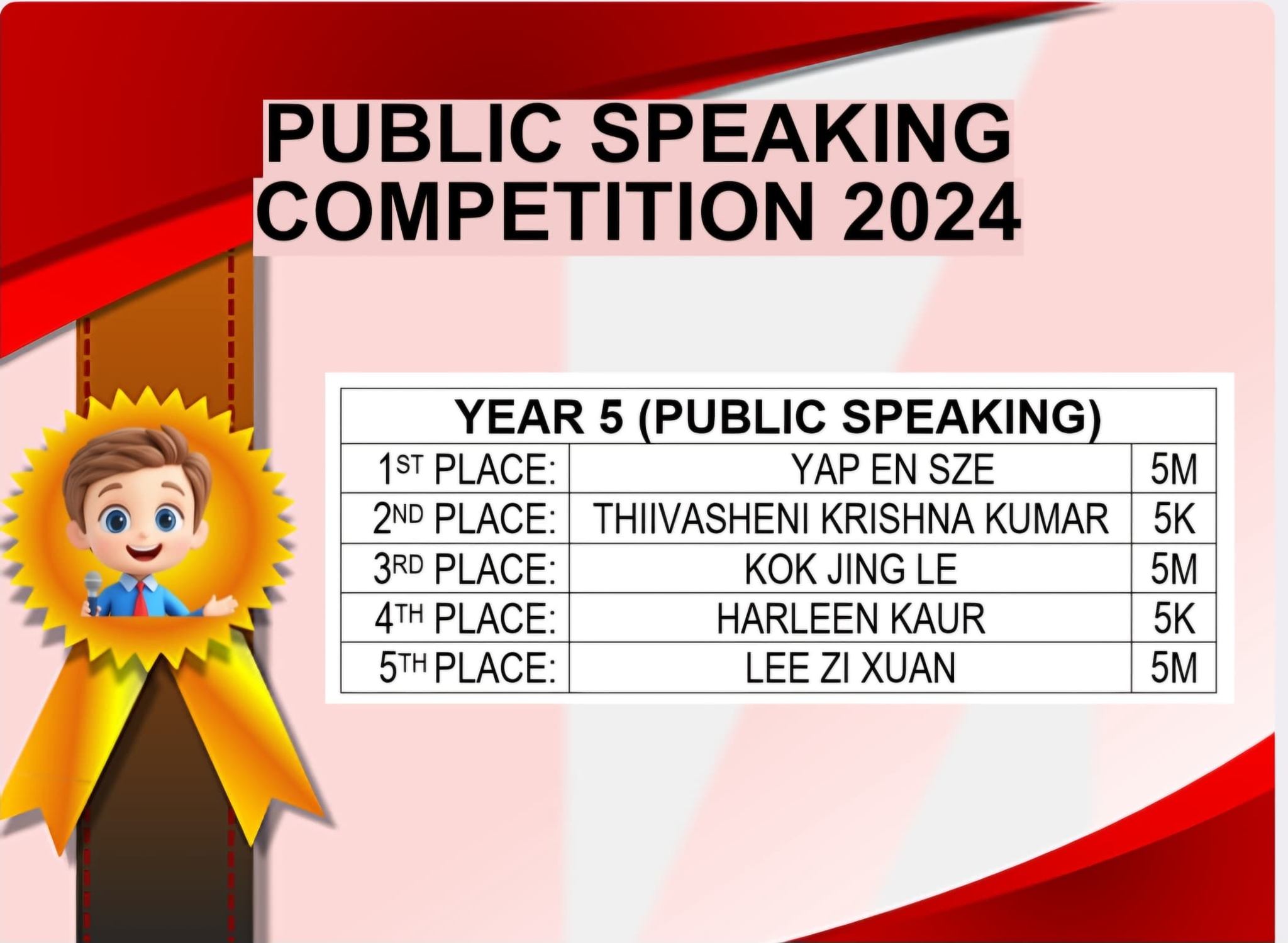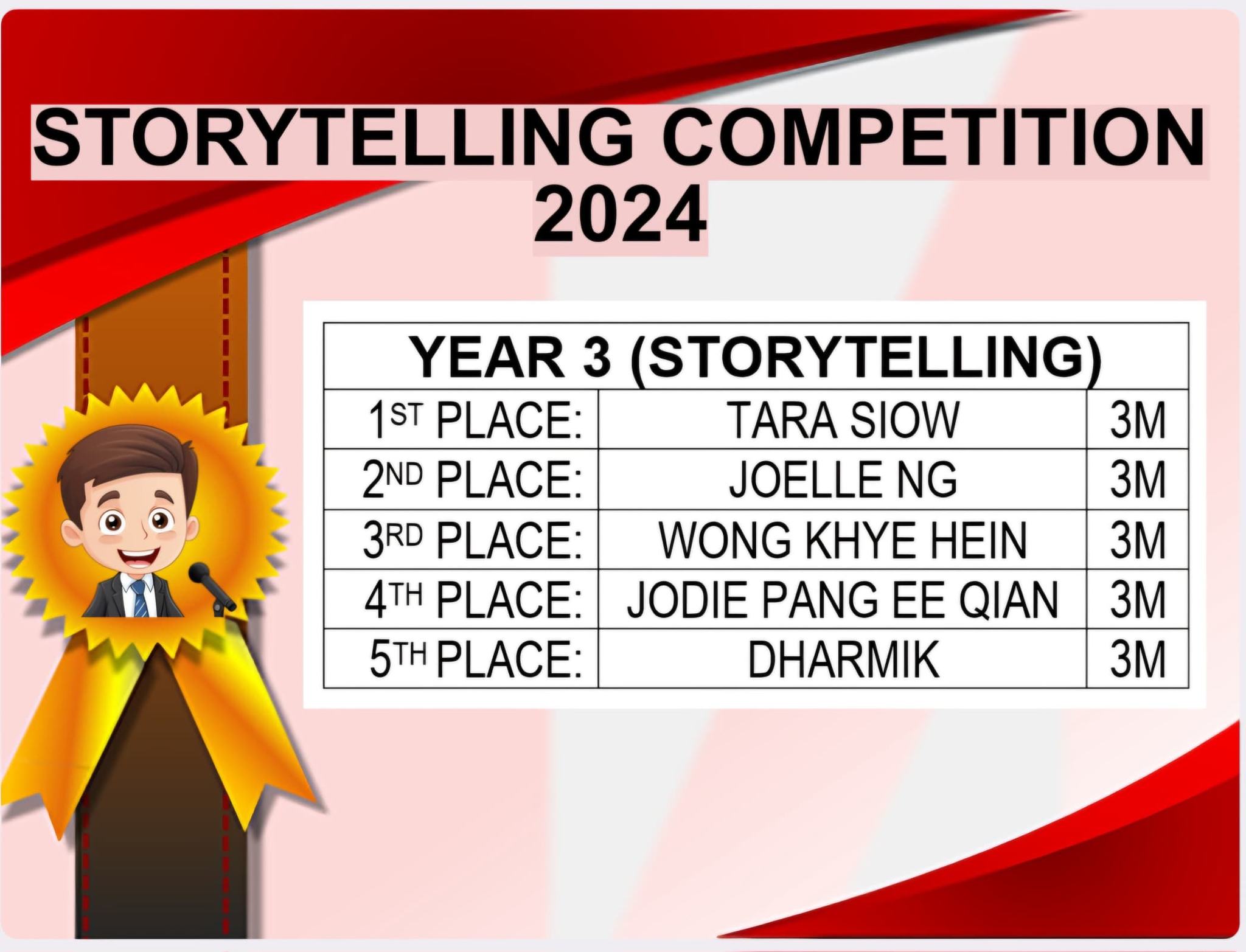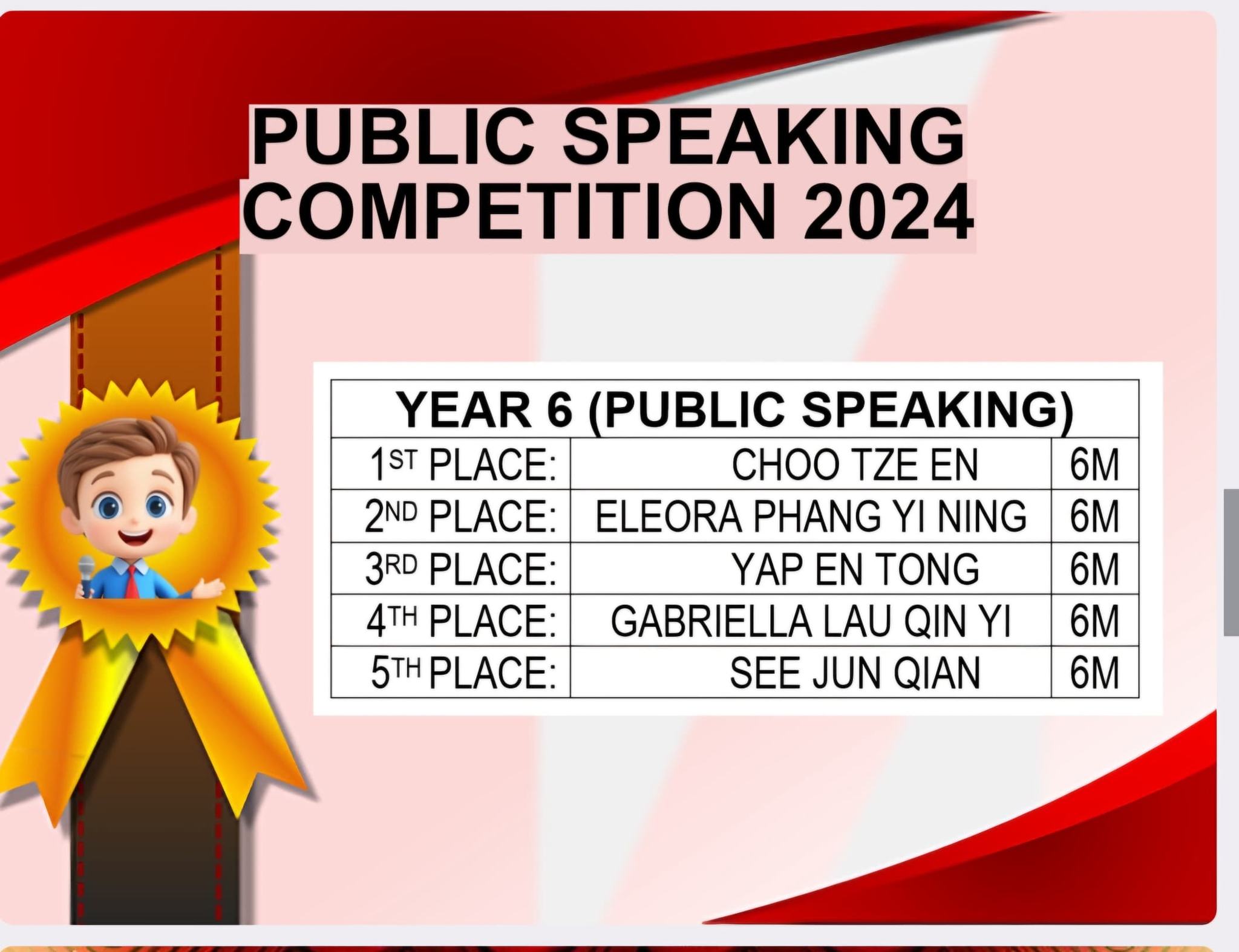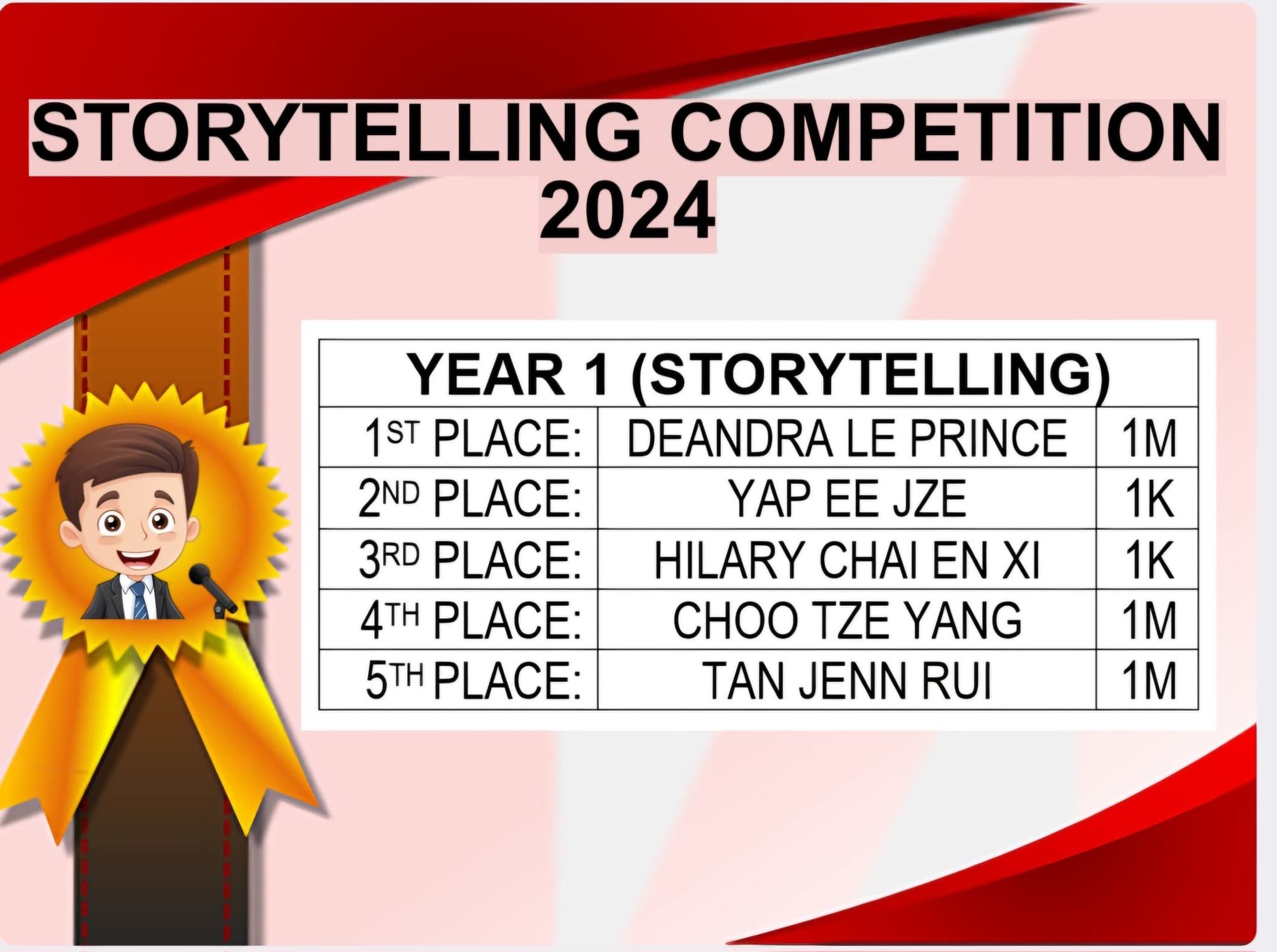 English Story Telling & Public Speaking Competition Post published:November 24, 2024 Post category:Event / News / Notice 校内英语讲故事和演讲比赛成绩揭晓啰!!! 恭喜所有脱颖而出的得奖者,并感谢劳苦功高的老师们及所有参与此项比赛的同学。 Congratulations to all the winners in English Story Telling & Public Speaking Competition. A big thank you to all English teachers and the judges for this competition. #侨南华小2024 #English Story Telling & Public Speaking Competition Read more articles Previous Post2024 年吉ACE羽毛球比赛2.0 LONG RIVER SPORTNext Post侨南华小羽毛球比赛 【新闻报导】