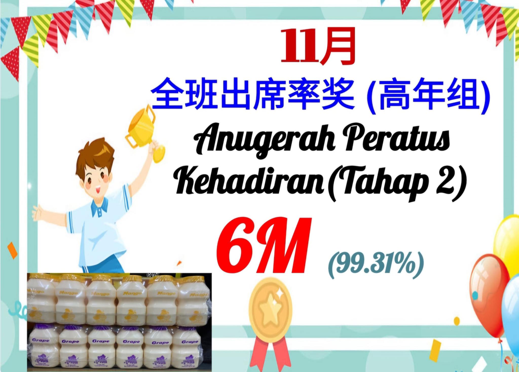 🏫2024年每月班级出席率奖及班级守时出席奖🏆🏫
