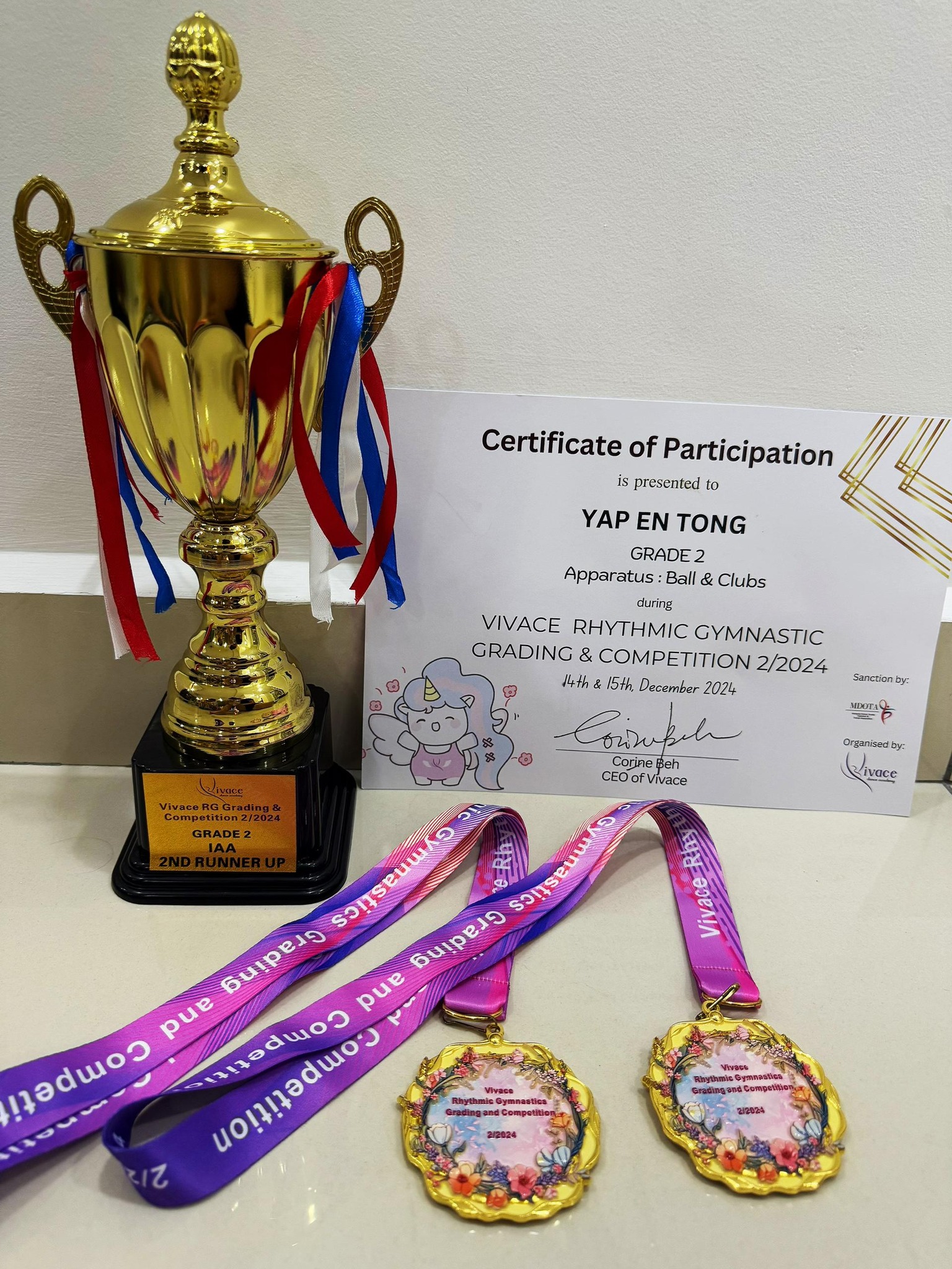 Vivace Rhythmic Gymnastic Grading & Competition 2/2024 Post published:December 21, 2024 Post category:Event / News / Notice 2024年 韵律操比赛 ♬┈♩┈♫┈♪┈♬┈♫┈♩┈♪┈♬ Vivace Rhythmic Gymnastic Grading & Competition 2/2024 Grade 2 Ball -1st Grade 2 Clubs -1st Grade 2 Individual all around -2nd runner up 恭喜叶恩彤同学在以上比赛中荣获多项奖项,为校增光,可喜可贺。 Read more articles Previous Post2024/2025年侨南华小模范生竞选活动Next Post学校假期通告
