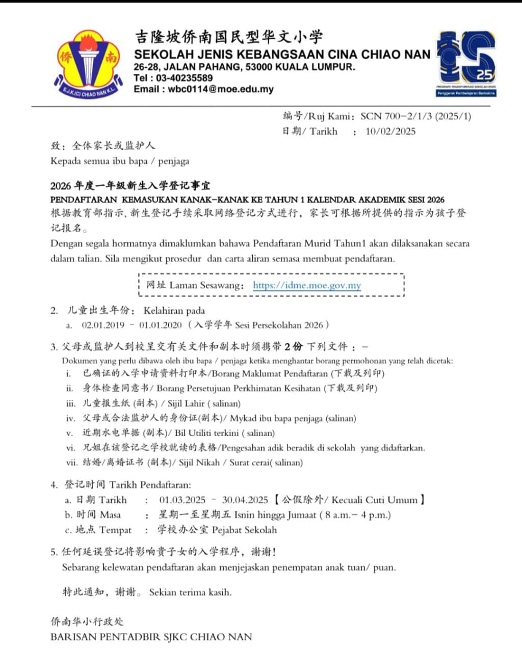 【Pendaftaran Tahun 1 Sesi Akademik 2026】