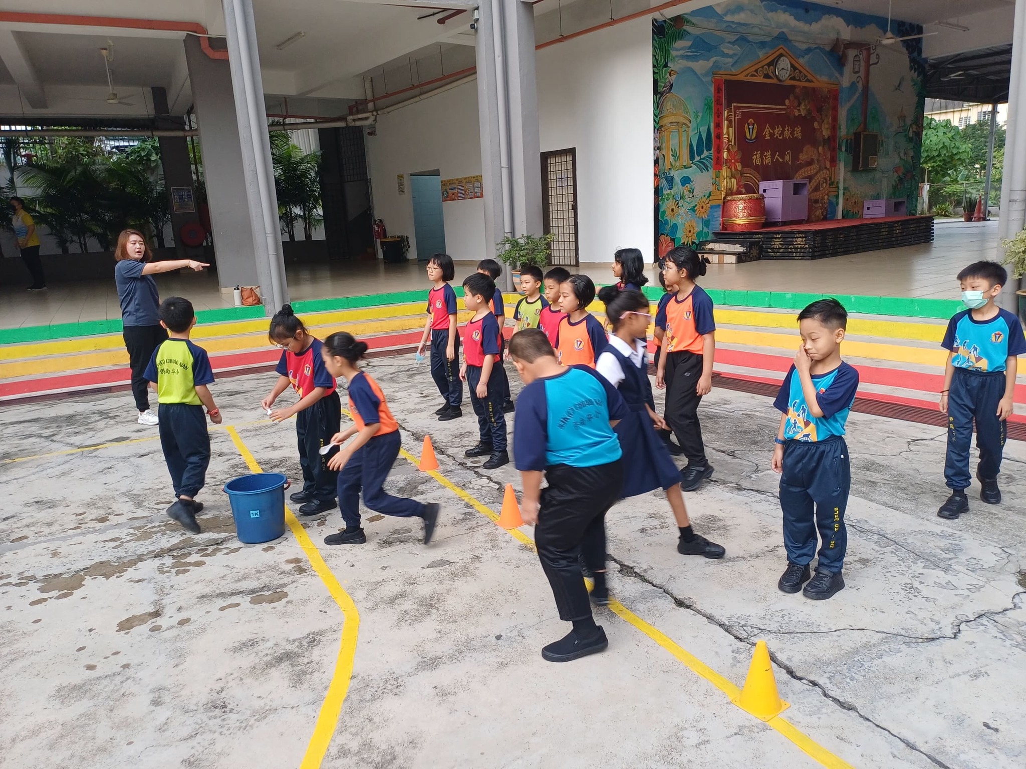 学生们齐聚礼堂及篮球场,在老师们的指导下,同学们都在不同的过站游戏当中学习信心、敏捷、专注和合作精神!